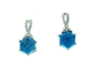 YCH 14k White Gold Blue Topaz and Diamond Earrings