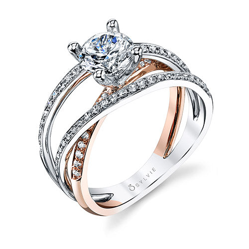 0.40tw Semi-Mount Engagement Ring With 1ct Round Head Two Tone