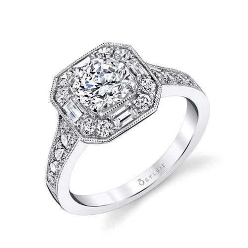 0.90tw Semi-Mount Engagement Ring With 1ct Round/Emerald-0.35Bag