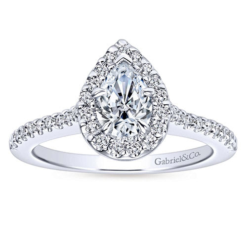 Gabriel & Co 14k White Gold Pear Shape Halo Engagement Ring