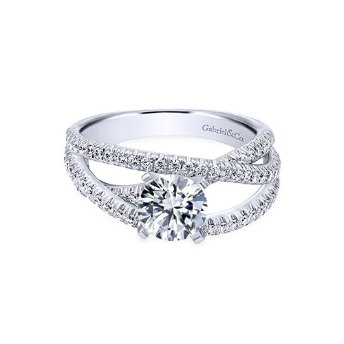Gabriel & Co 14k White Gold Round Free Form Engagement Ring