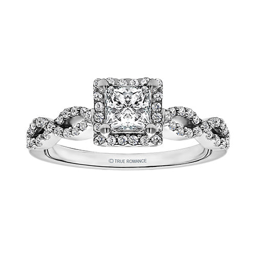 True Romance 14k White Gold 0.33ct Diamond Halo Semi Mount Engagement Ring