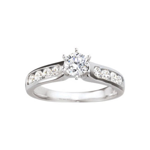 An elegant design, this diamond engagement ring showcases a prong-set diamond classic that crowns the center stone. This style accommodates various center stone sizes & shapes. Available in Platinum, as well as 18K and 14K White, Yellow or Rose Gold.