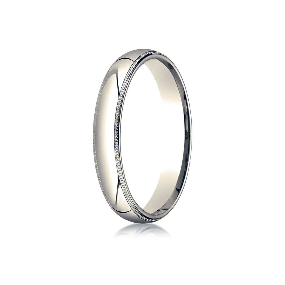 18K Yellow Gold Benchmark 4mm Slightly Domed Standard Comfort-Fit Wedding Band with Milgrain