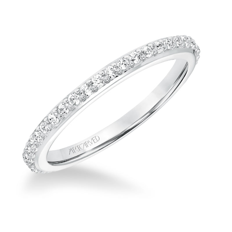 Artcarved Bridal Mounted with Side Stones Classic Halo Diamond Wedding Band Evangeline 14K White Gold - 31-V646W-L.00