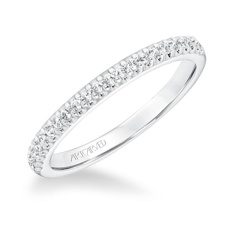 Artcarved Bridal Mounted with Side Stones Classic Halo Diamond Wedding Band Liv 14K White Gold - 31-V644W-L.00