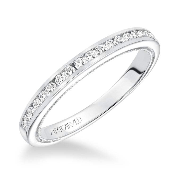 Artcarved Bridal Mounted with Side Stones Contemporary Diamond Wedding Band Posey 14K White Gold - 31-V586W-L.00