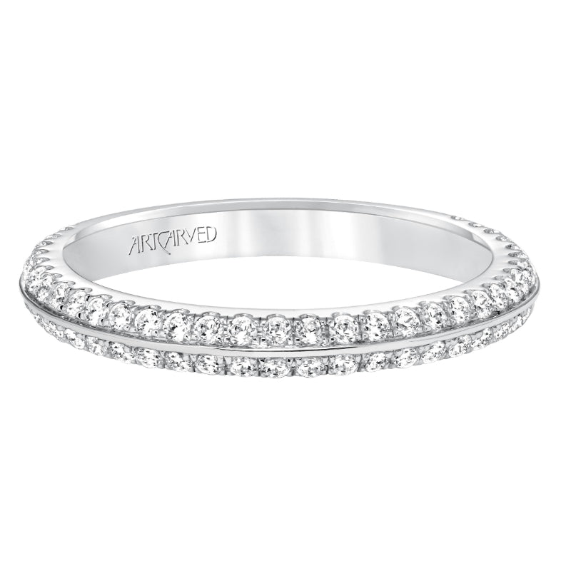 Artcarved Bridal Mounted with Side Stones Contemporary Twist Halo Diamond Wedding Band Liana 14K White Gold - 31-V592W-L.00