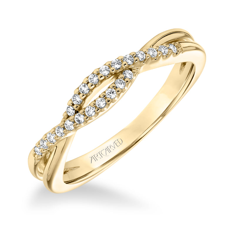 Artcarved Bridal Mounted with Side Stones Contemporary Twist Solitaire Diamond Wedding Band Kennedy 14K Yellow Gold - 31-V677Y-L.00