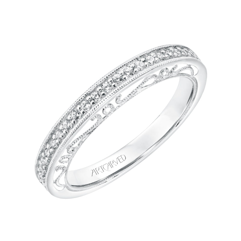 Artcarved Bridal Mounted with Side Stones Vintage Heritage Diamond Wedding Band Velma 14K White Gold - 31-V728W-L.00