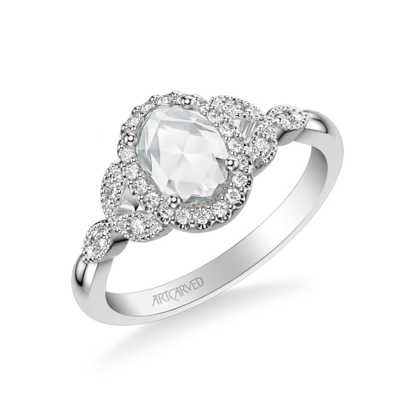 Artcarved Bridal Mounted Mined Live Center Contemporary Rose Goldcut Halo Engagement Ring Isabella 14K White Gold - 31-V976CVW-E.00