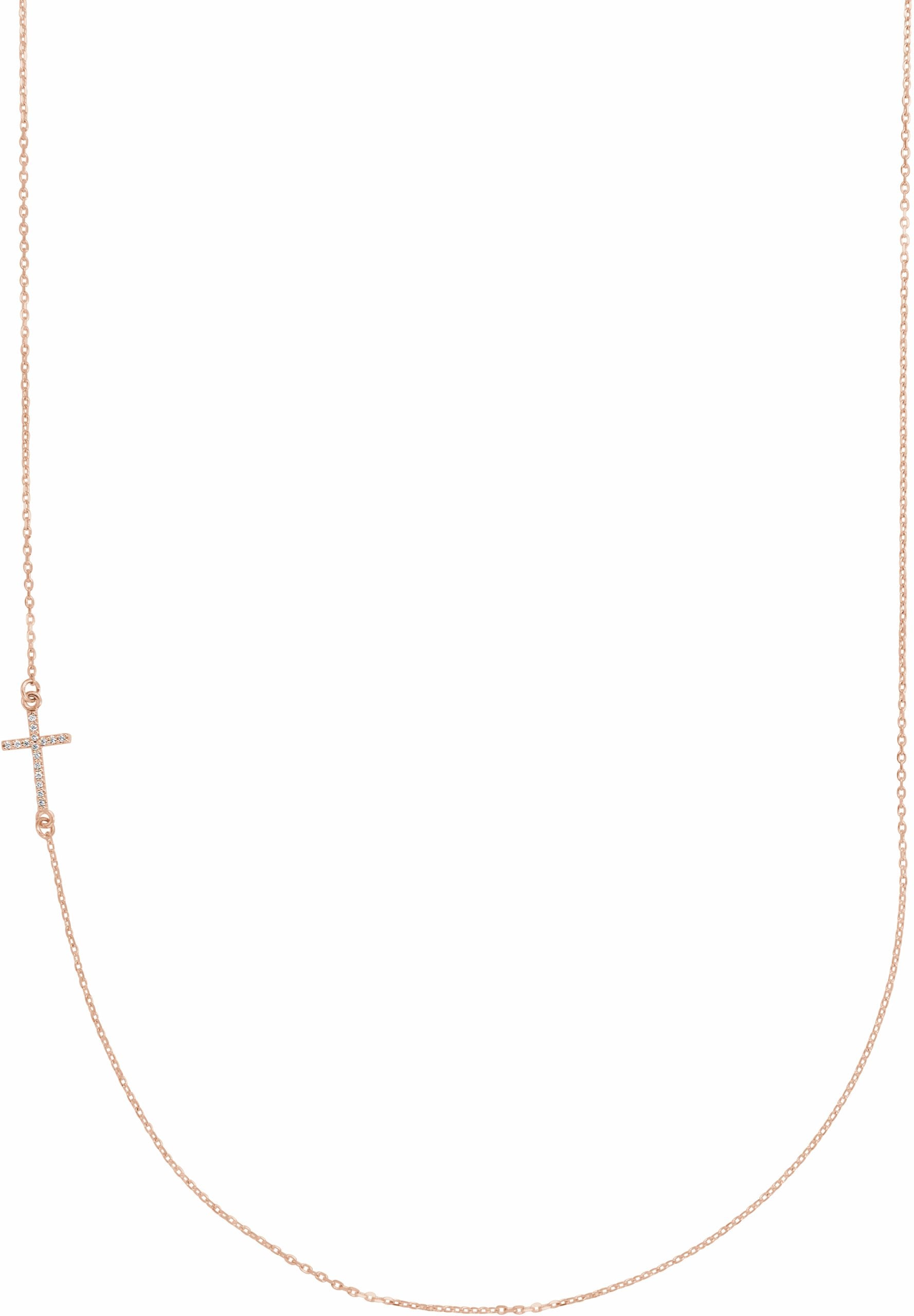 86668 / Set / 14K Rose / Polished / .04 Ctw Dia Off-Center Sideways Cross Necklace