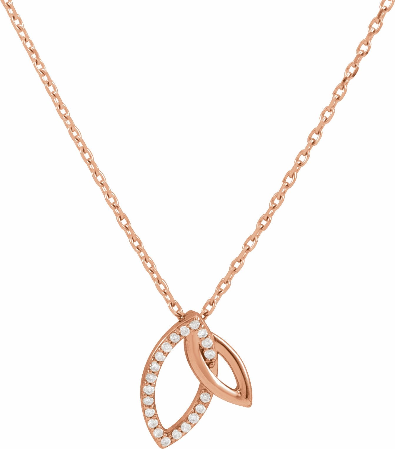 14K Rose .05 CTW Diamond Double Leaf 18 Necklace - 86463602P