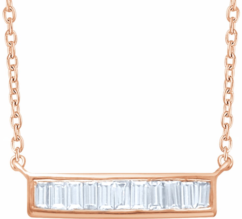 14K Rose 1/4 CTW Diamond Baguette Bar 16-18 Necklace - 65188560005P