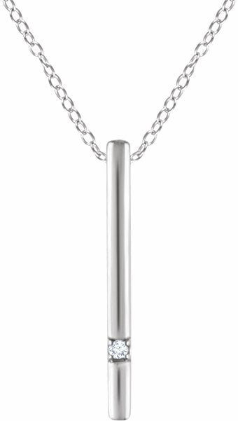 652219 / Necklace / 14K White / Set / Diamond / Round / 1.5Mm :: .0150 Ct / I1, H+ / 16-18 In / Polished / Solitaire Vertical Bar Necklace
