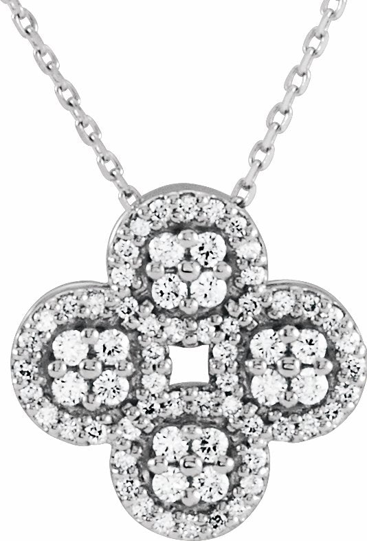 14K White 1/2 CTW Diamond Clover 18 Necklace - 86309600P