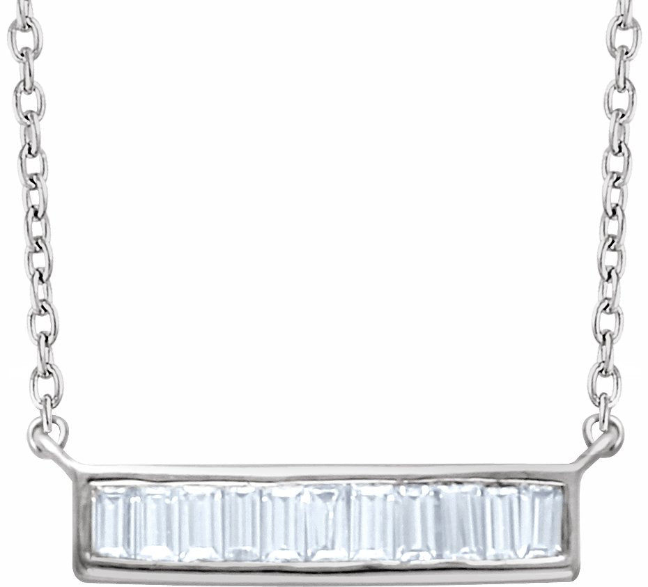 14K White 1/4 CTW Diamond Baguette Bar 16-18 Necklace - 65188560004P