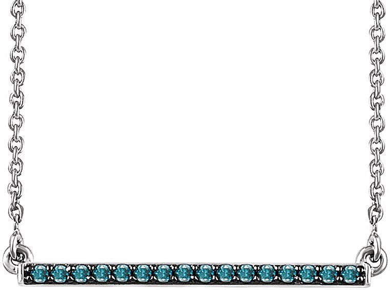 651738 / Blue / 14K White / 1/6 Ctw Blue Diamond Bar Necklace With Rho Plate