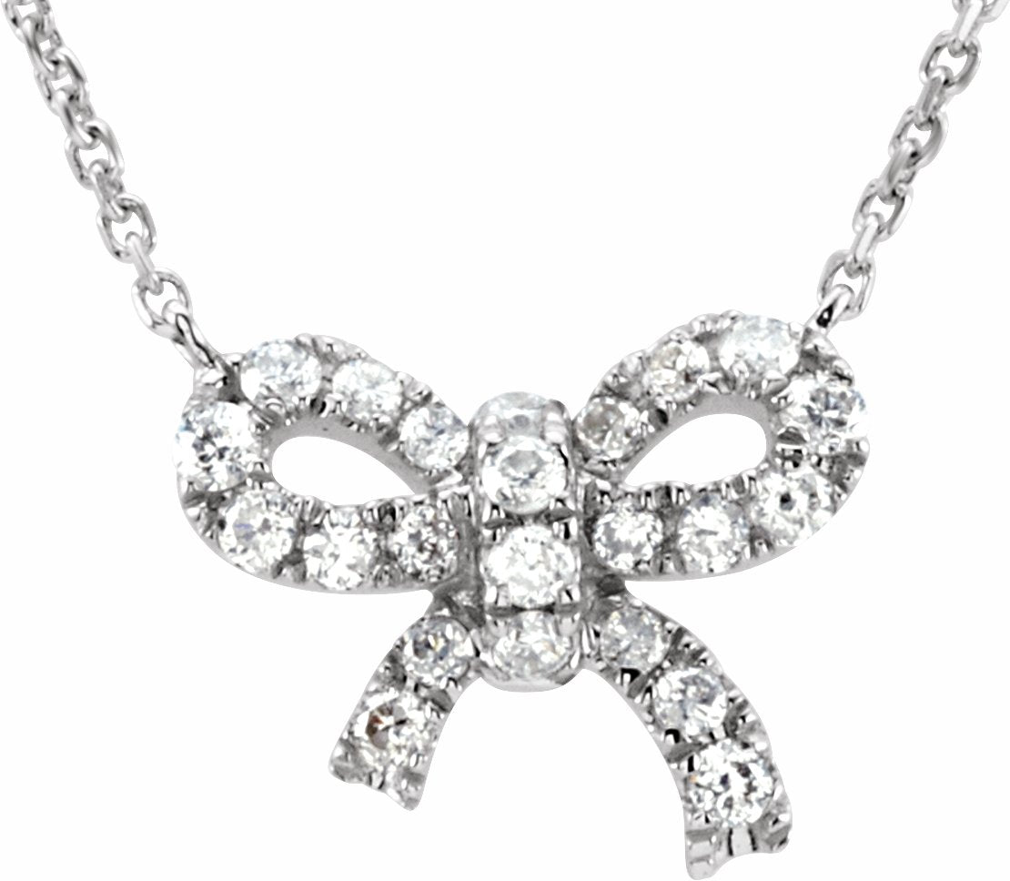 651937 / 14K White / 1/6 Ctw Diamond Bow Necklace
