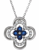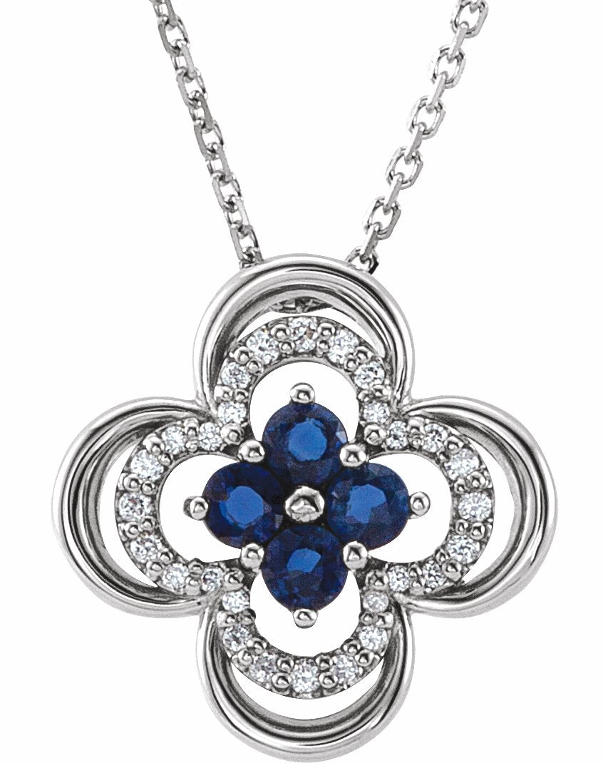 14K White Blue Sapphire & 1/10 CTW Diamond Clover 18 Necklace - 86369600P