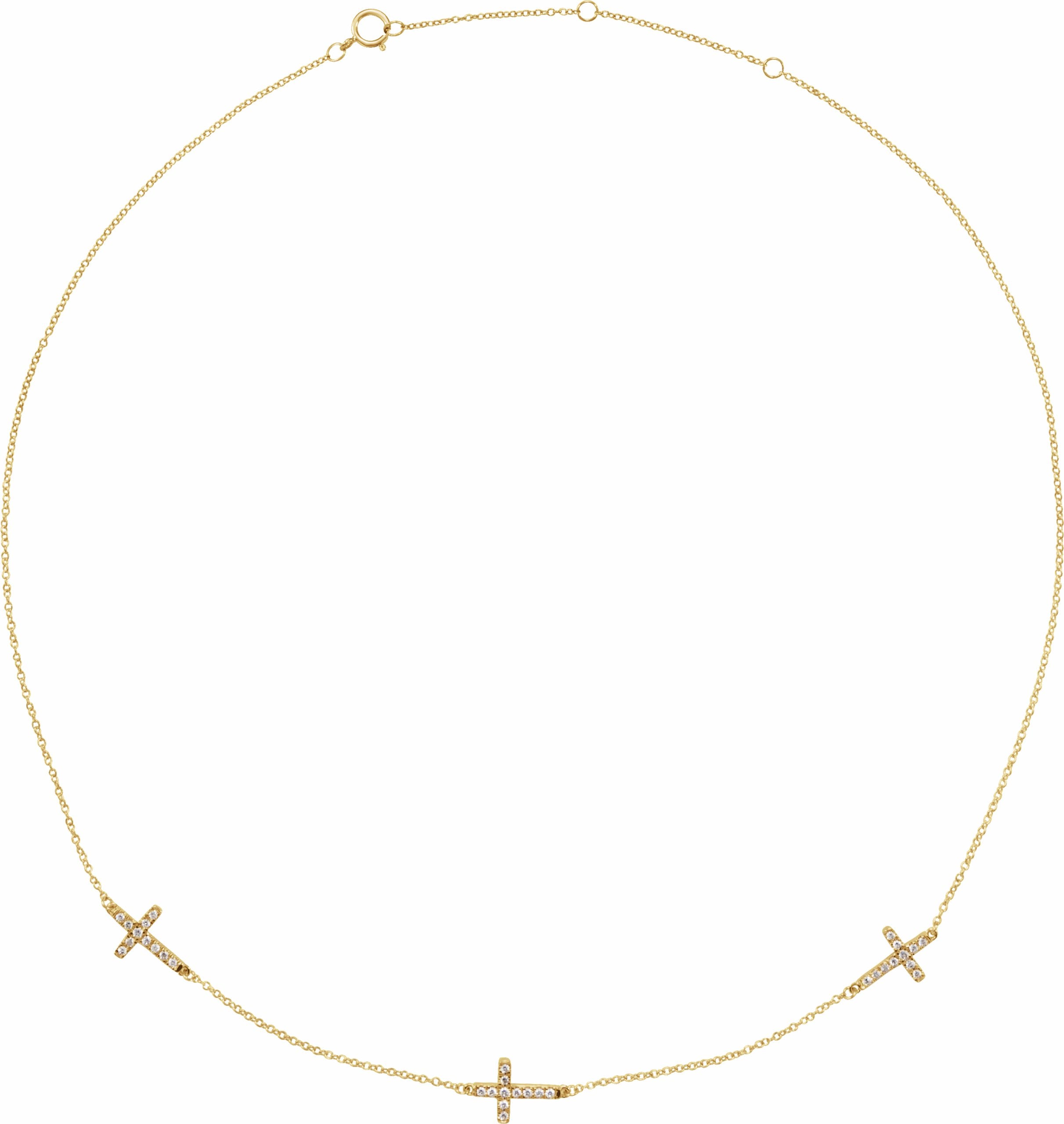 653452 / Set / 14K Yellow / 3-Station / 16-18 In / Polished / 1/4 Ctw Diamond 3-Station Cross Necklace