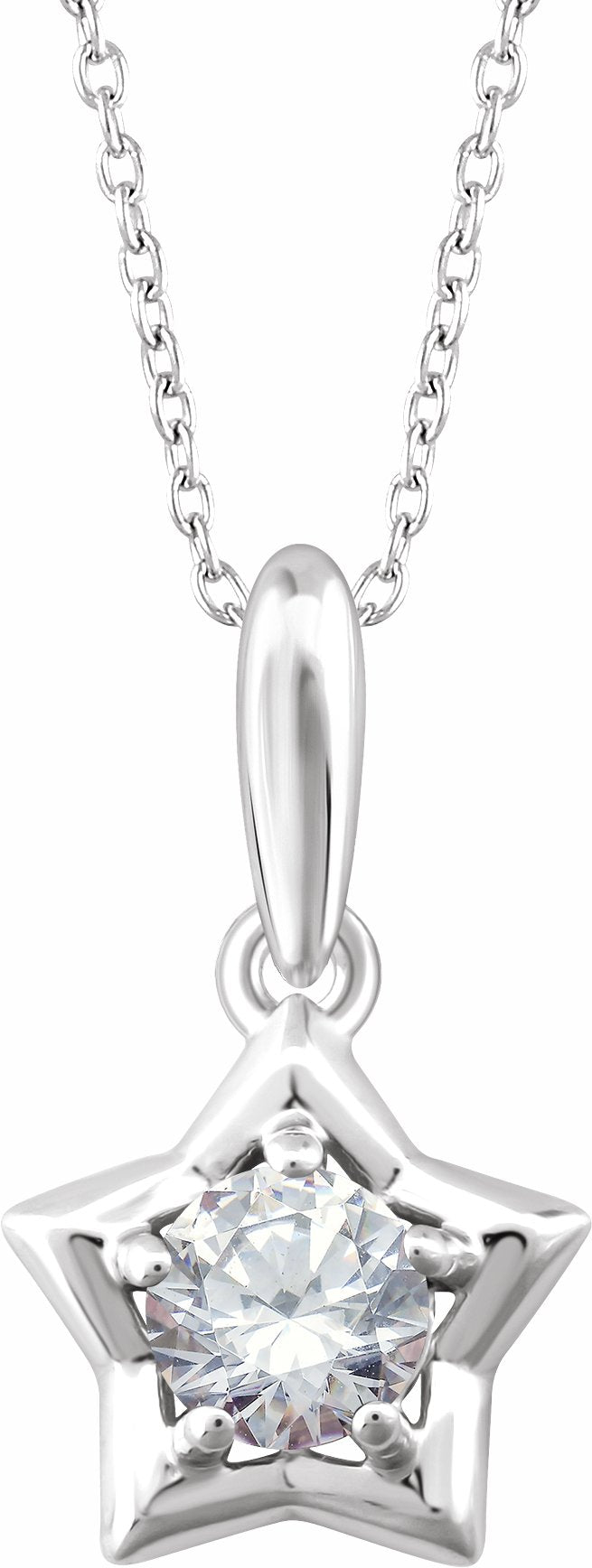 14K White 3 mm Round April Youth Star Birthstone 15 Necklace - 653418644P