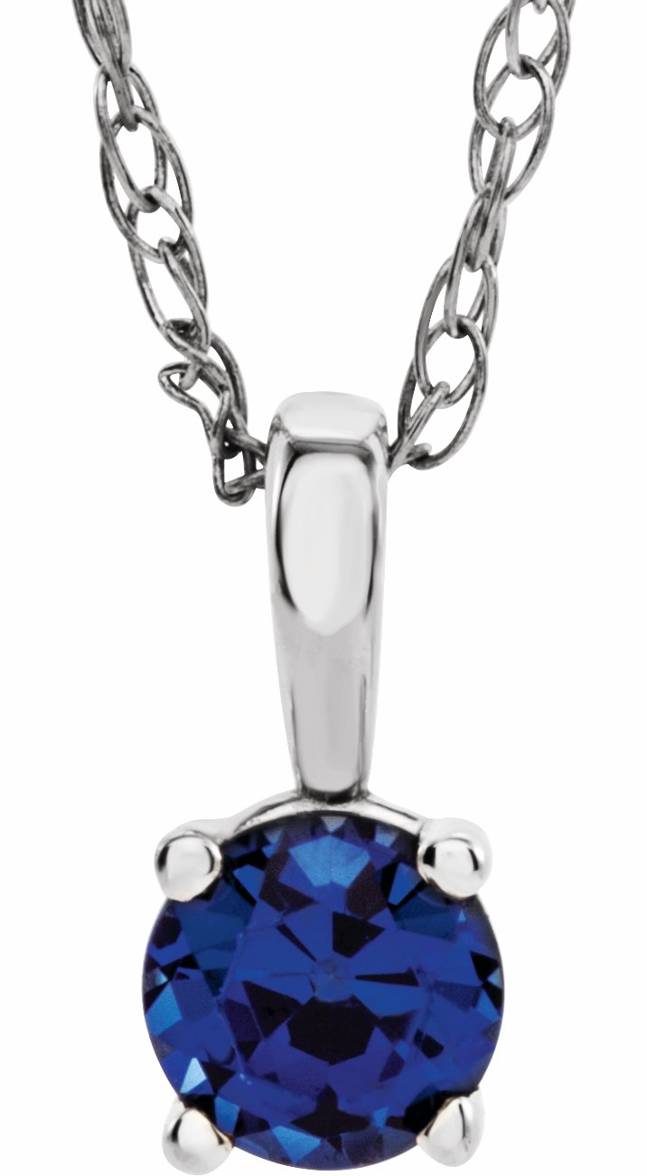 14K White 3 mm Round Blue Sapphire Youth Birthstone 14 Necklace - 2839370069P