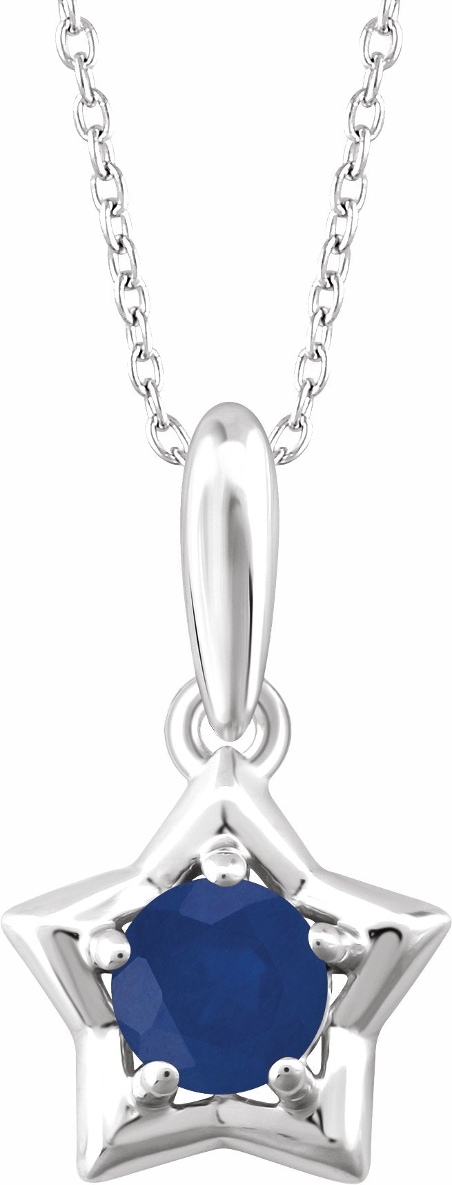 14K White 3 mm Round September Youth Star Birthstone 15 Necklace - 653418656P