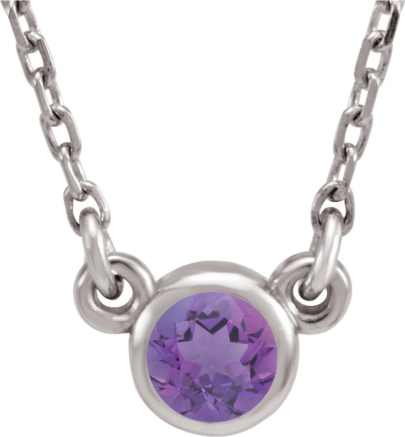 14K White 4 mm Round Amethyst Bezel-Set Solitaire 16 Necklace - 6113460009P