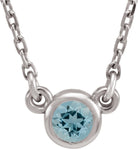 14K White 4 mm Round Aquamarine Bezel-Set Solitaire 16 Necklace - 6113460011P