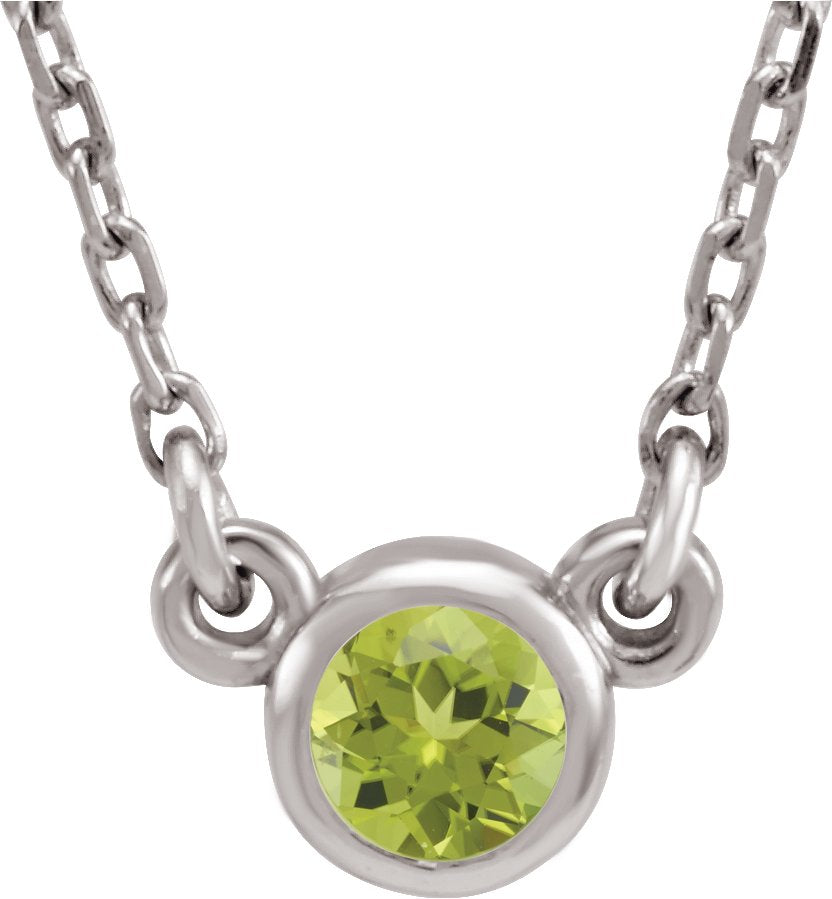 14K White 4 mm Round Peridot Bezel-Set Solitaire 16 Necklace - 6113460021P