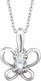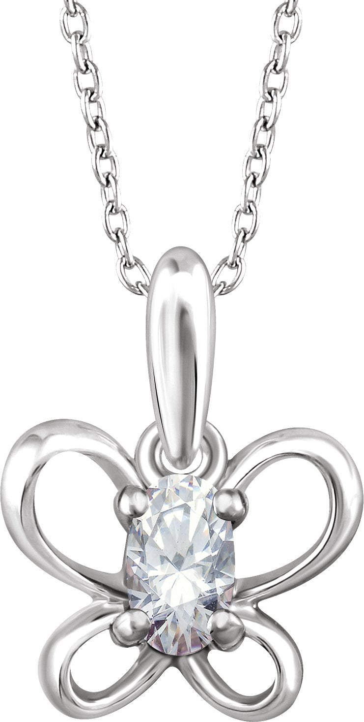 14K White 4x3 mm Oval April Youth Butterfly Birthstone 15 Necklace - 653422644P