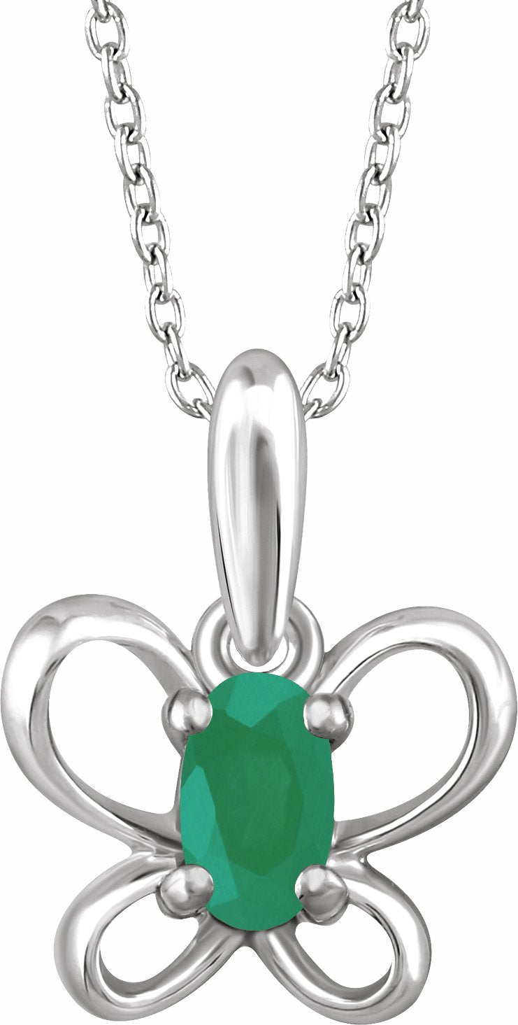 14K White 4x3 mm Oval May Youth Butterfly Birthstone 15 Necklace - 653422647P