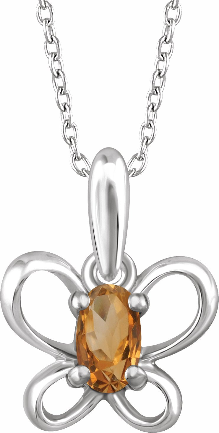 14K White 4x3 mm Oval November Youth Butterfly Birthstone 15 Necklace - 653422662P