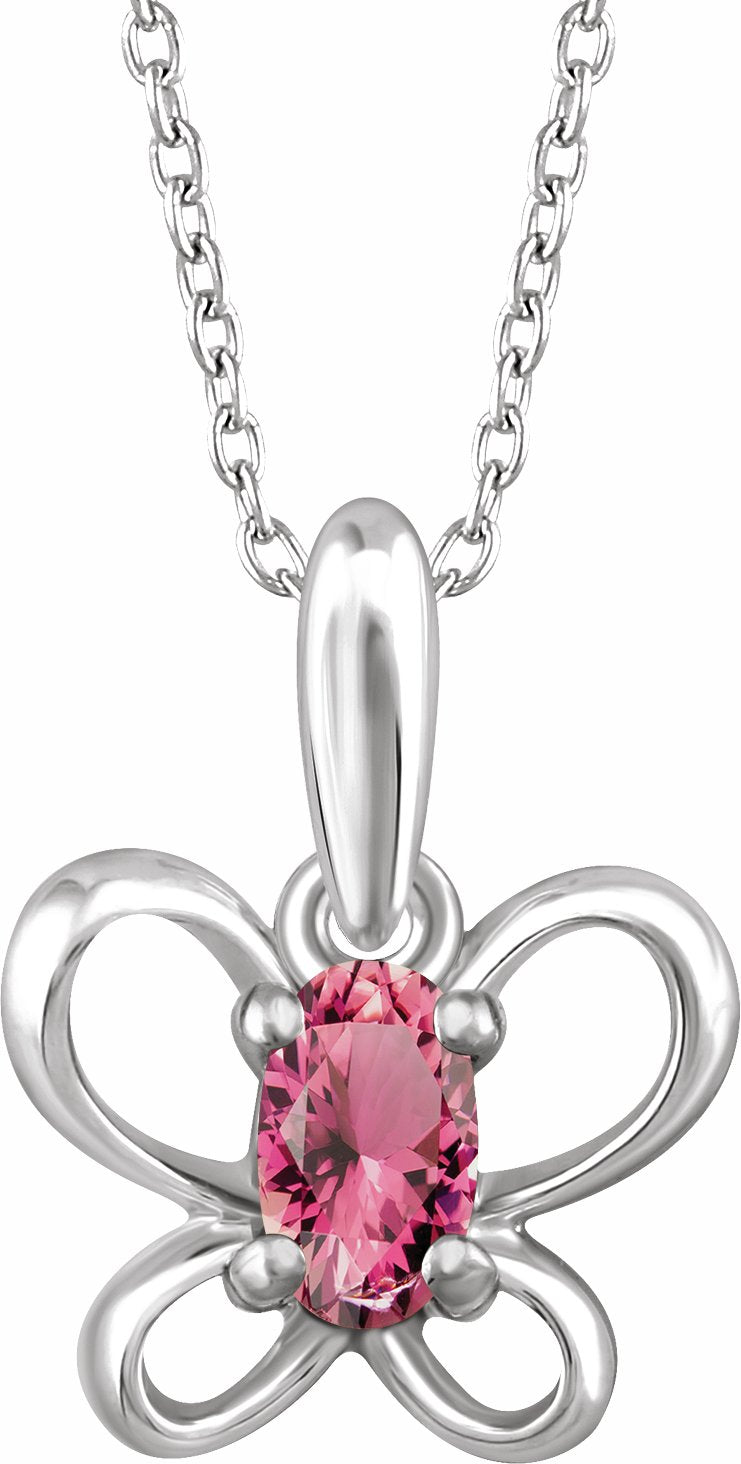 14K White 4x3 mm Oval October Youth Butterfly Birthstone 15 Necklace - 653422659P