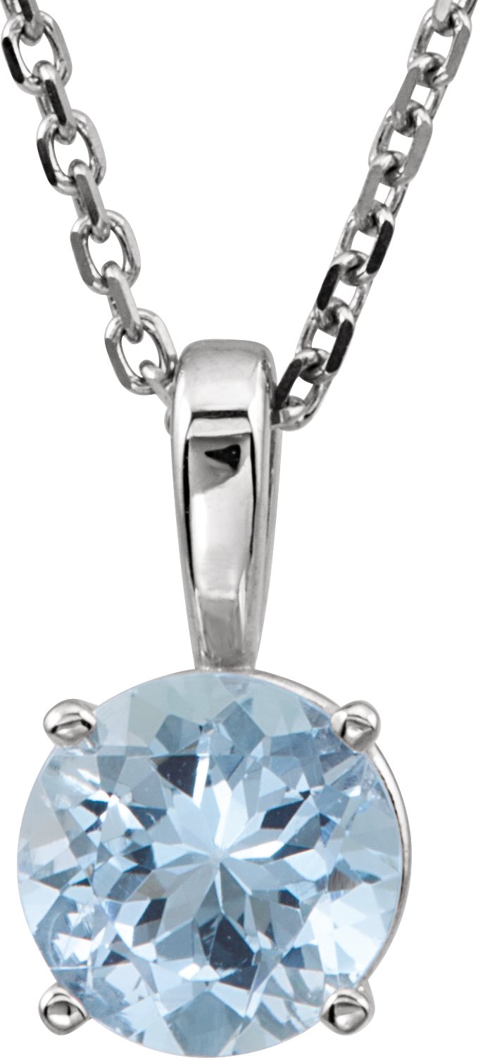 14K White 6 mm Round Aquamarine Youth Birthstone 14 Necklace - 2839370000P