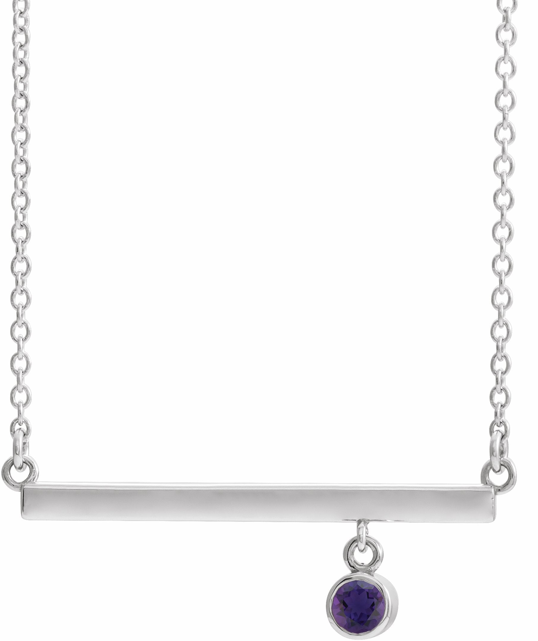 86905 / Necklace / Set / 14K White / Amethyst / 27.3 X 5.2 Mm / 18 In / Polished / Genuine Amethyst 18 In Bar Necklace