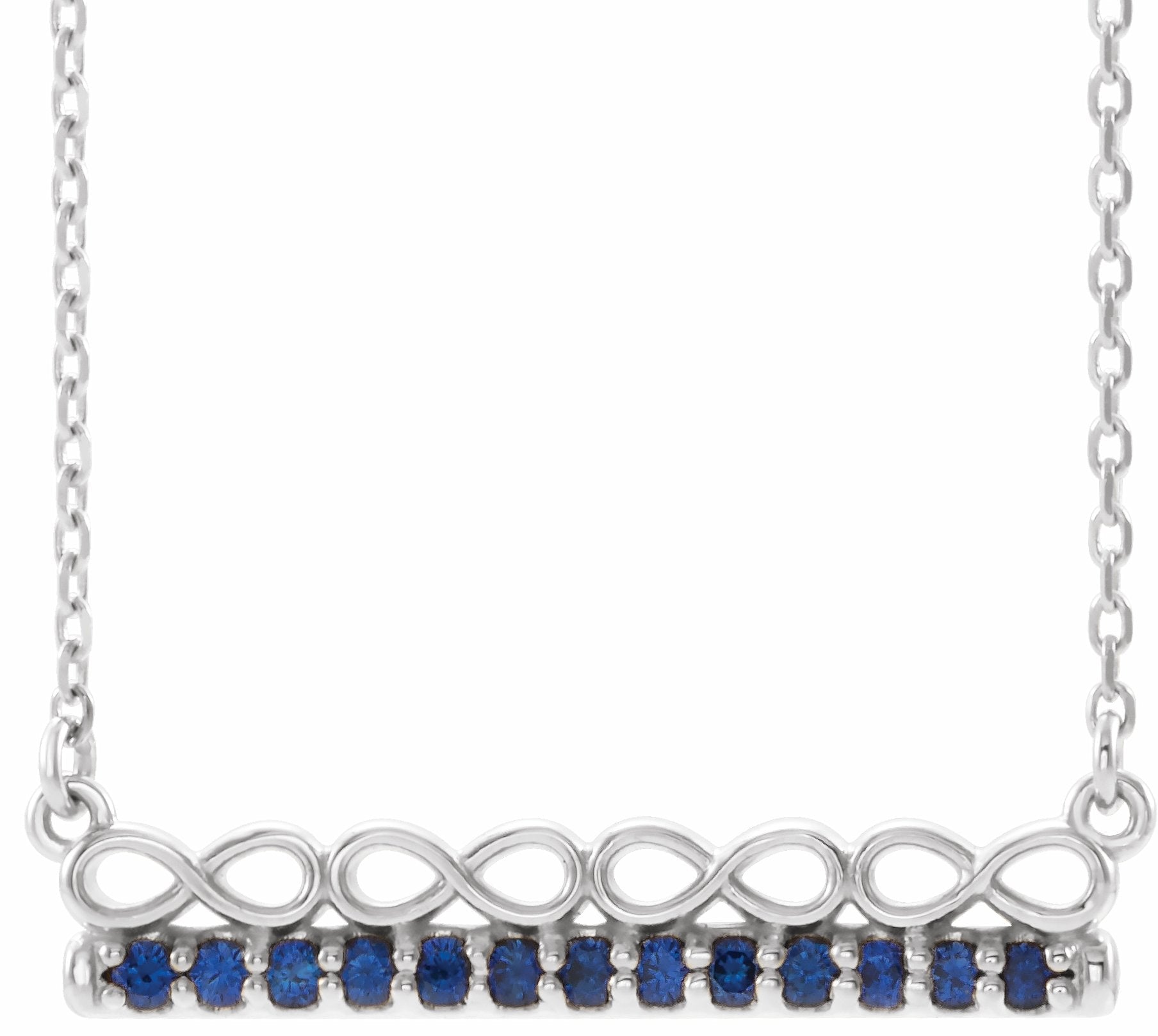 14K White Blue Sapphire Infinity-Inspired Bar 18 Necklace - 86823615P