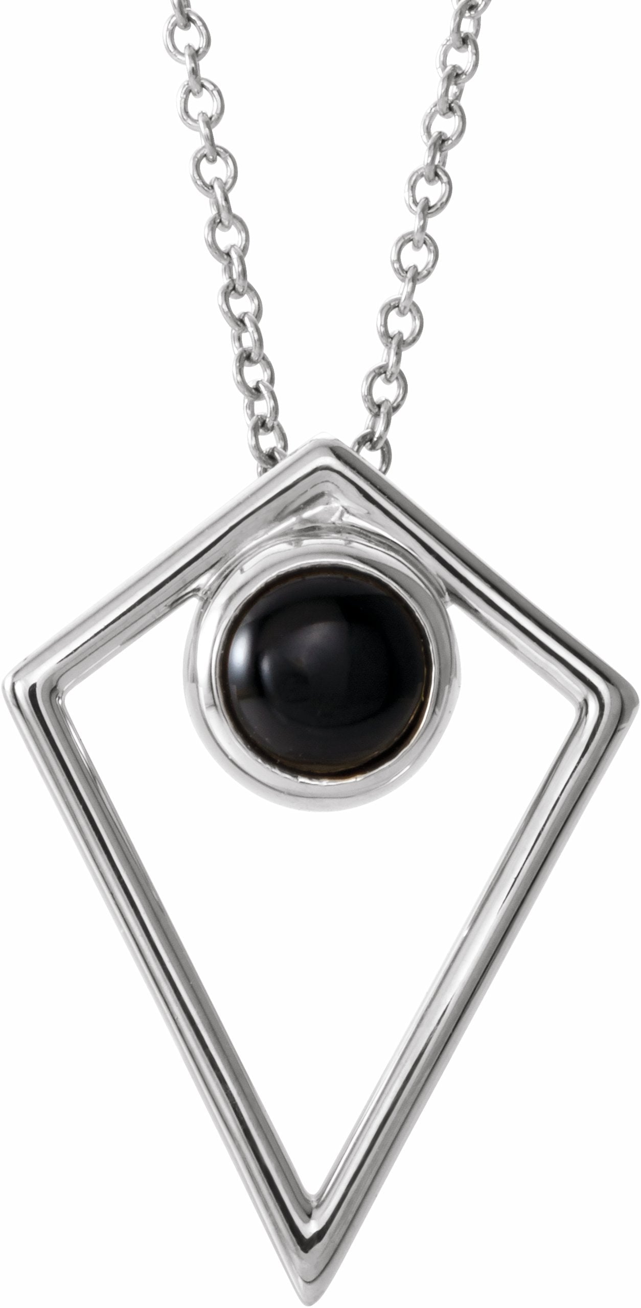 86863 / Necklace / Set / 14K White / Onyx / 19.9 X 14.8 Mm / 16-18 In / Polished / Genuine Cabochon Onyx Pyramid Necklace