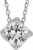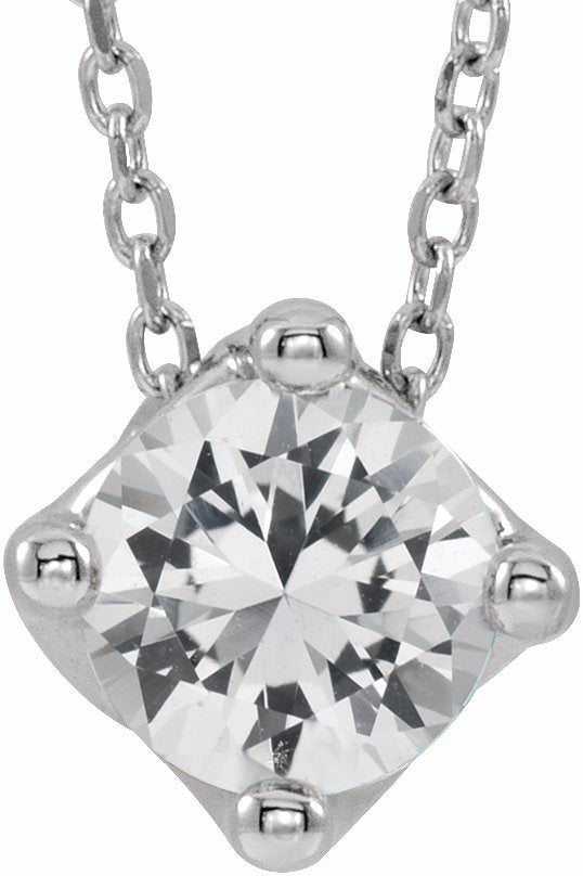 87136 / 14K White / Set / White Sapphire / Round / 5 Mm / Necklace / 16-18 In / Polished / Genuine White Sapphire Solitaire Necklace