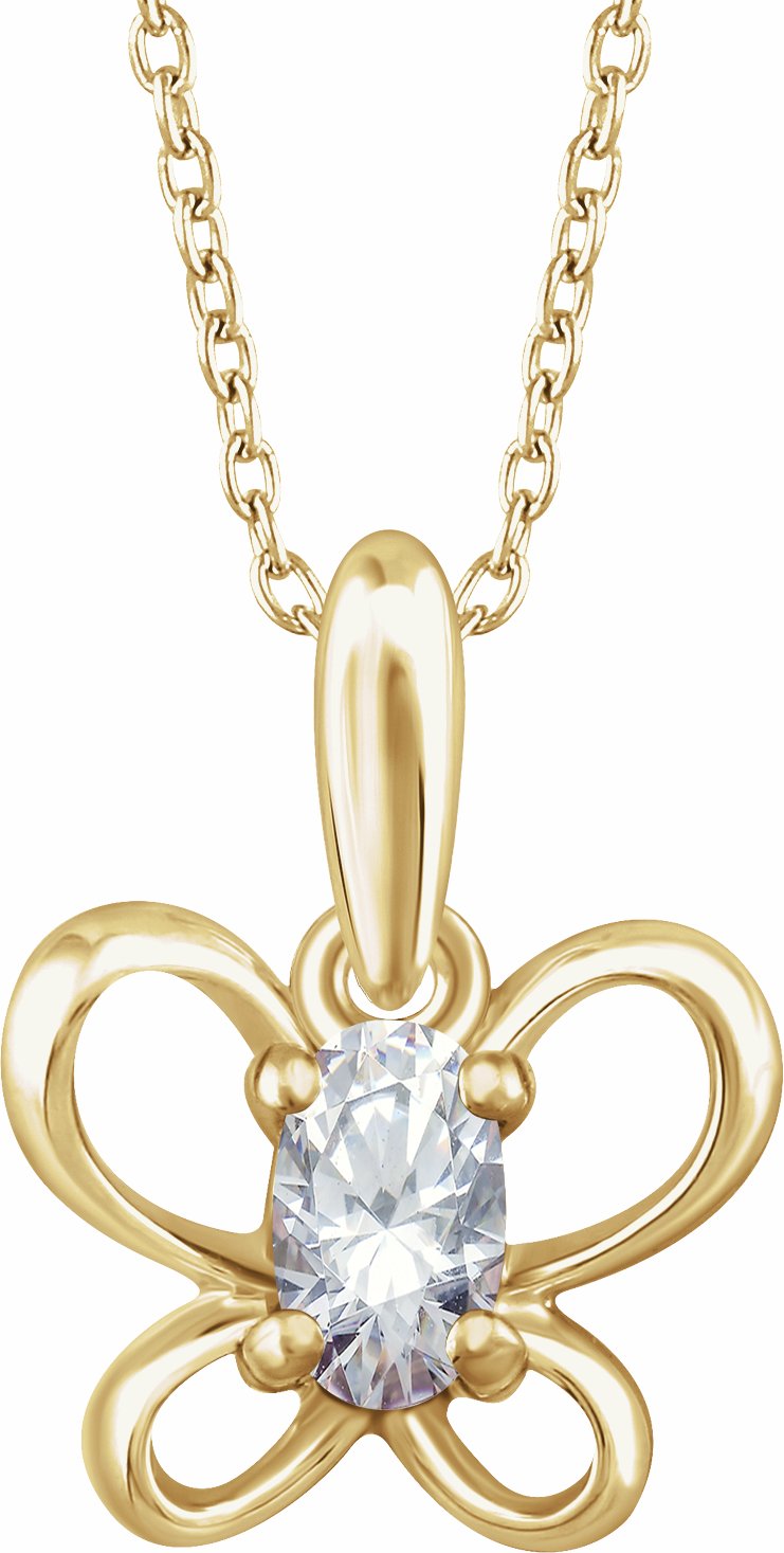 14K Yellow 4x3 mm Oval April Youth Butterfly Birthstone 15 Necklace - 653422643P