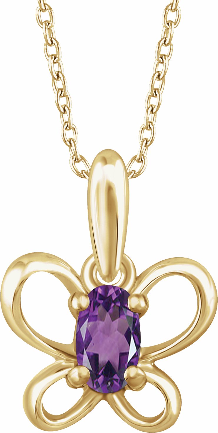 14K Yellow 4x3 mm Oval February Youth Butterfly Birthstone 15 Necklace - 653422637P