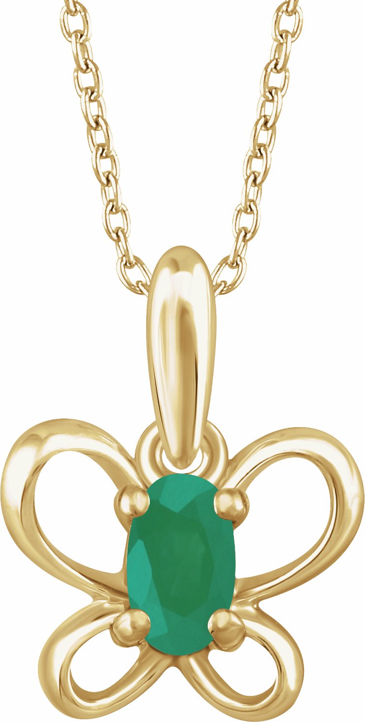 14K Yellow 4x3 mm Oval May Youth Butterfly Birthstone 15 Necklace - 653422646P