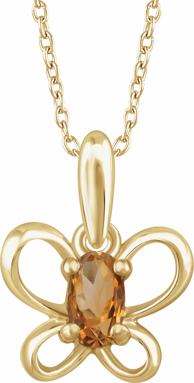 14K Yellow 4x3 mm Oval November Youth Butterfly Birthstone 15 Necklace - 653422661P
