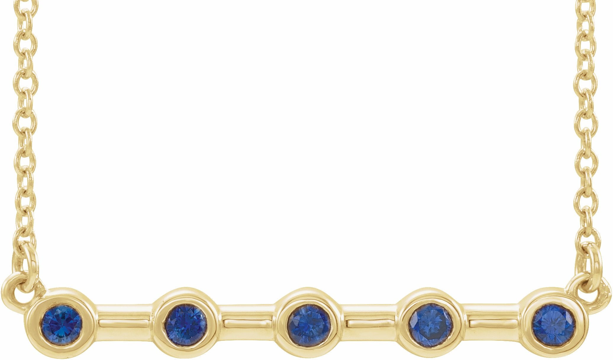 14K Yellow Blue Sapphire Bezel-Set Bar 18 Necklace - 868406136P