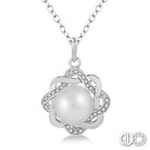 6.5X6.5mm Cultured White Pearl And 1/10ct Round Cut Diamond Pendant In Sterling Silver With Chain