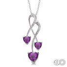 5&7mm Heart Shape Amethyst And 1/50ct Single Cut Diamond Pendant In Sterling Silver With Chain