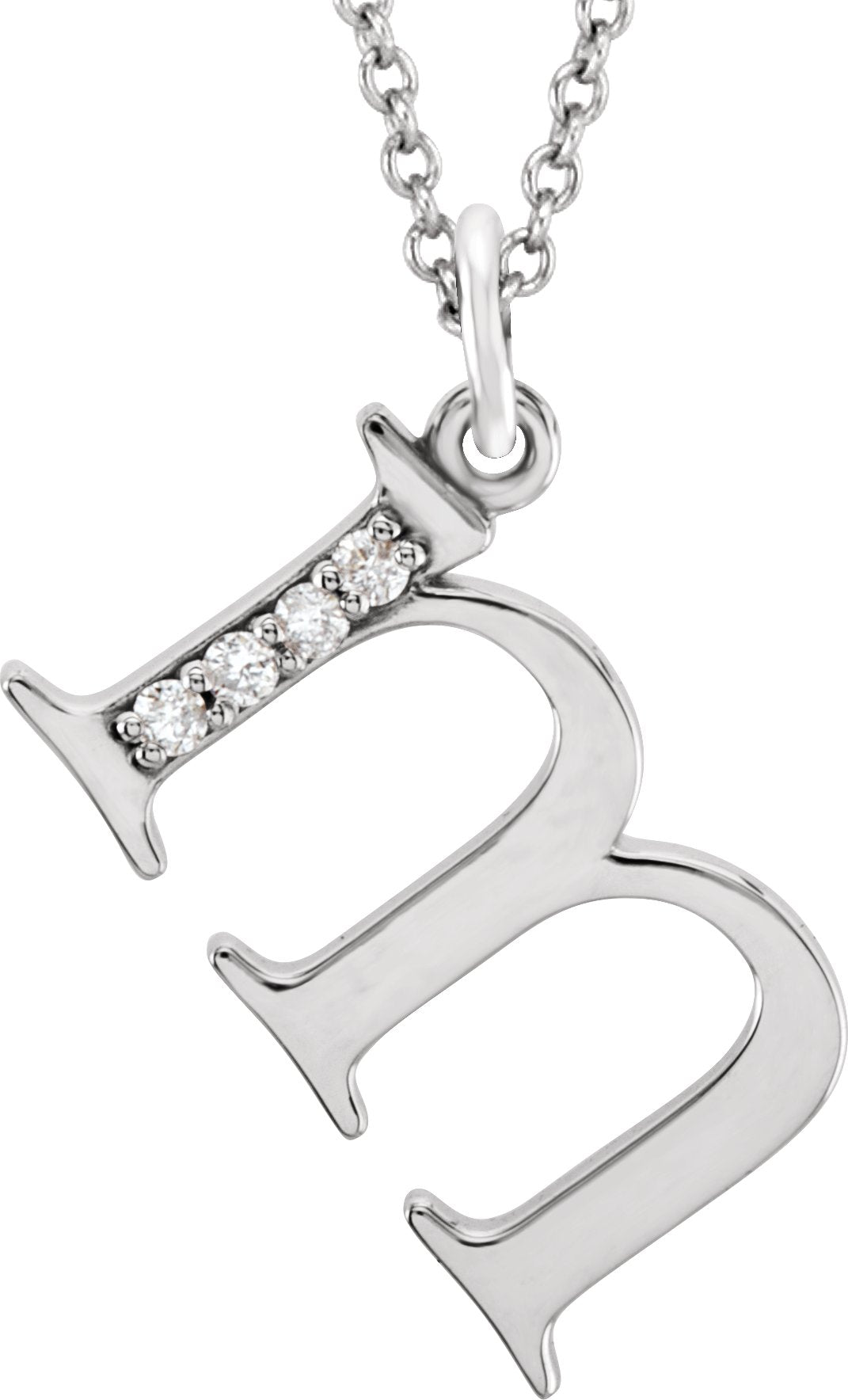 85803 / Necklace / Set / 14K White / M / Polished / .02 Ctw Diamond 16 Inch Initial Necklace