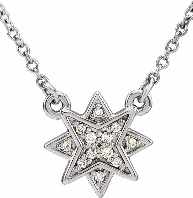86436 / Necklace / Set / 14K White / Polished / .04 Ctw Diamond 16-18 Inch Star Necklace