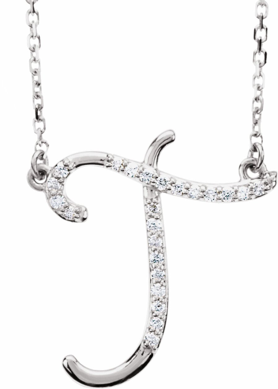 14K White 1/10 CTW Diamond Initial T 16 Necklace - 67399138P